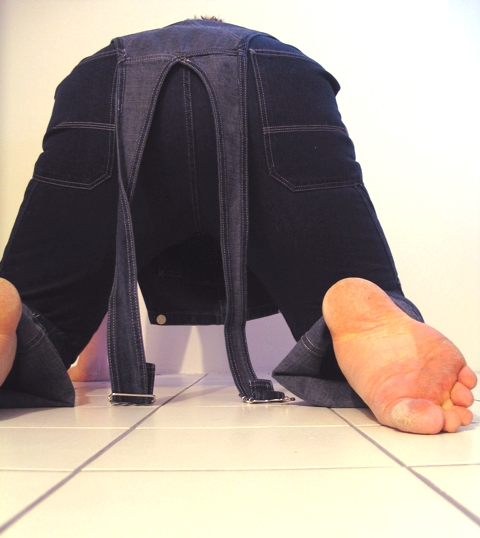 Denim fetish selfies shot with camera's timer.