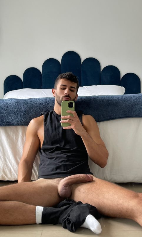 What a sexy fucker. I want him to throw me on that bed and breed me with that hot cock.